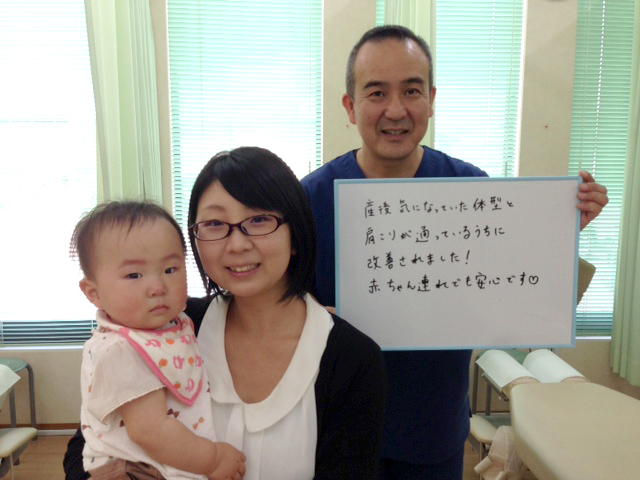 - 産後寝返りをすると腰に激痛が走り、歩くと股関節が痛み、4ヶ月の娘が泣いてもすぐ抱っこしてあげられませんでした(TT。治療していただいて今はずいぶん体が楽になりました!!